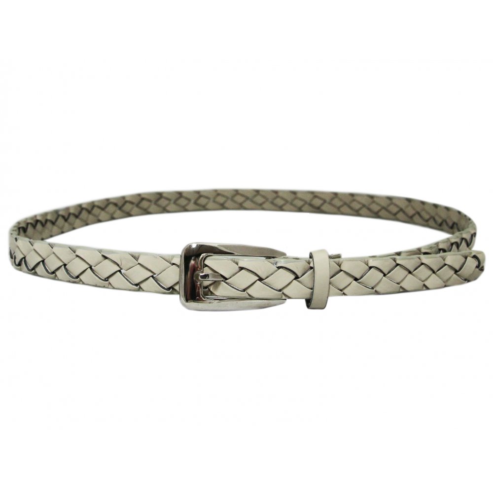 Flätat beigefärgat dambälte i lackerat koläder.