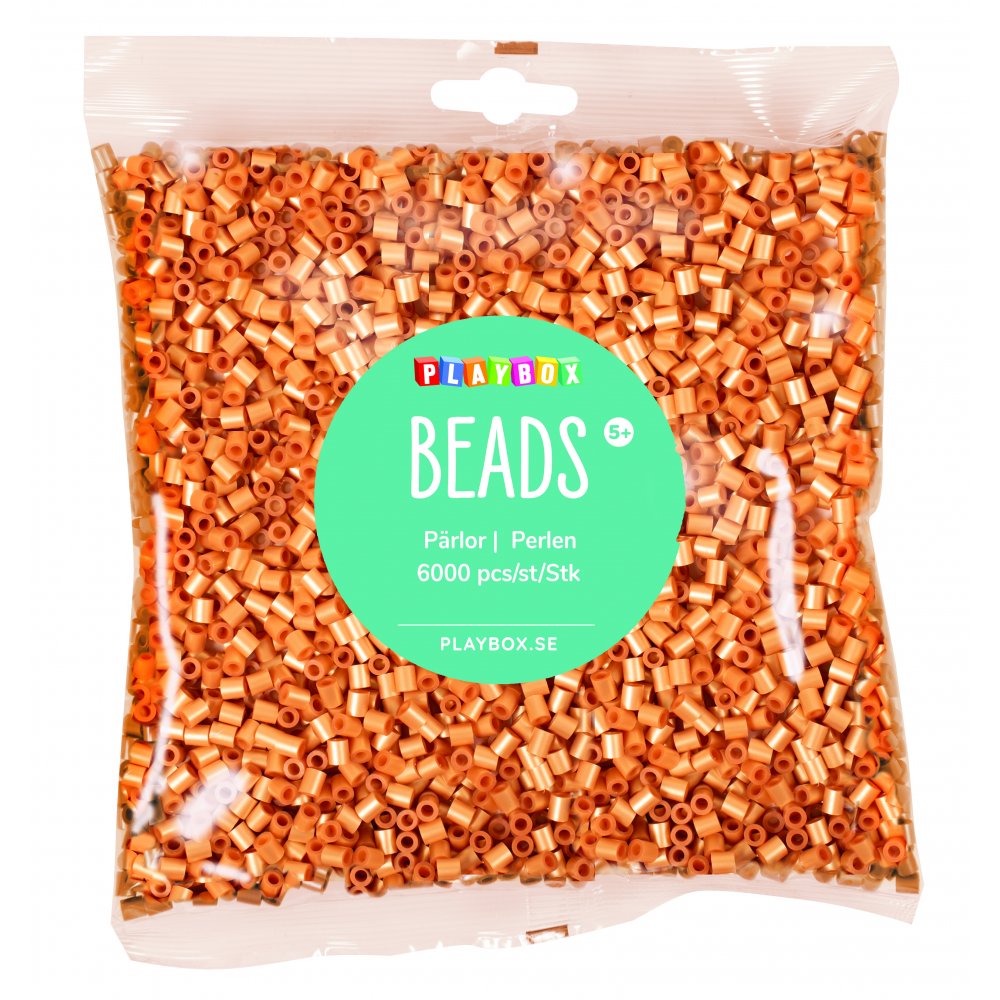 Påse med 6000 pärlor i guldfärg.